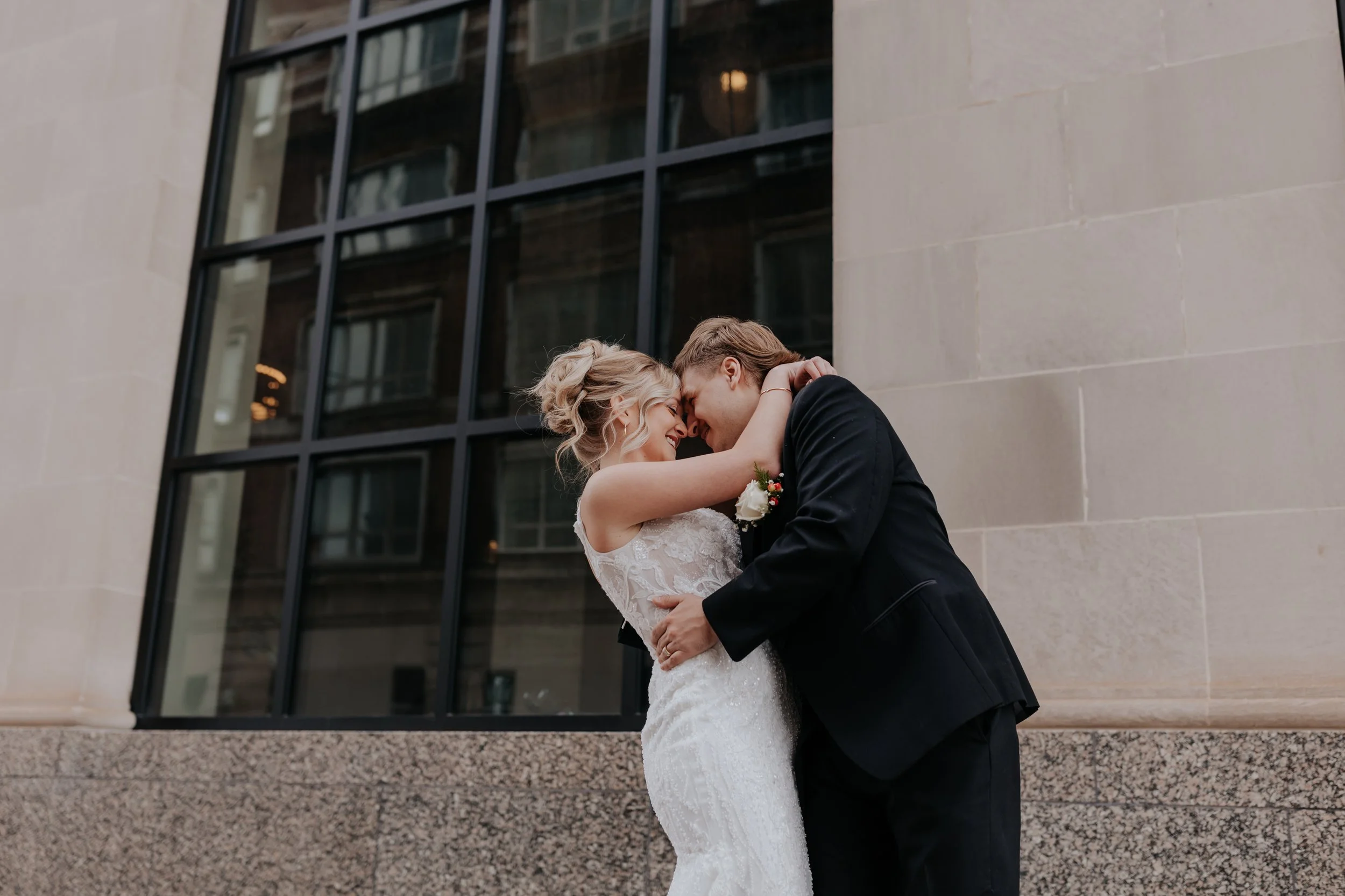 Natural light bounces off the sidewalk, and the venue’s windows add a lovely contrast.